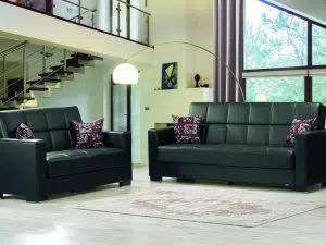 Armada Sofa Sleeper & Loveseat Black Leatherette
