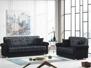 The Armada in #14 BRN/BRN 20-440/05-181 Chennelle and Leatherette. This futon is as modern in style as it is in function. The futon Sofa opens to 47″X74″. All accent pillows are included completing the look for style and comfort. Each piece in the set has built-in under seat storage with ample space for storing bedding or other items. Its easy Click-Clack mechanism makes it easy for young and old to operate. Whether you’re in need of a sofa sleeper or a whole set the Armada can accommodate any need.