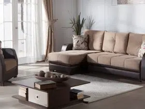 The Armada in #7 BRN/BROWN 27-379/ 05-181 Microfiber. This futon is as modern in style as it is in function. The Full Sofa opens to 47″X74″. All accent pillows are included completing the look for style and comfort. Each piece in the set has built-in under seat storage with ample space for storing bedding or other items. Its easy Click-Clack mechanism makes it easy for young and old to operate. Whether you’re in need of a sofa sleeper or a whole set the Armada can accommodate any need.