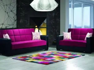 The Orion futon sectional is a perfect balance of traditional and modern. Its leatherette arms and base along with the chrome accents give it a modern feel where the wood top arms and soft fabric soften the look. You can depend on this collection for comfort and relaxation.