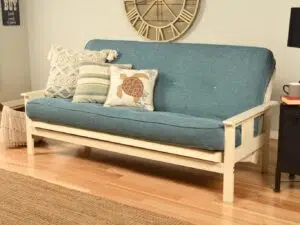 The Monterey (Also known as the Chloe) wood futon set is offered in six finishes: Antique White, Barbados, Black, Butternut, and Espresso.ย The package includes a coil spring futon mattress with suede fabric in your choice of color. Chloe's slim and simple arm can easily transition to any decor.
