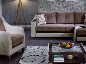 The Becky Sectional transitions easily from day to night. It is unassembled for easy transportation and has storage in the chaise. The back cushions are double-stuffed for a cozy feel. This compact sectional packs a punch for its size and practicality.